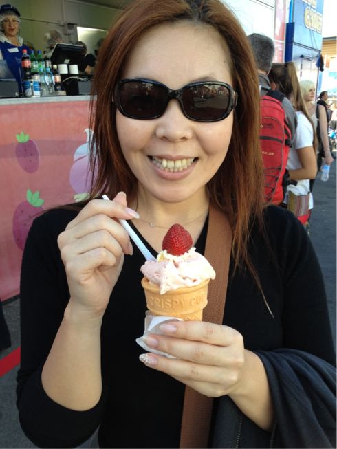 場所は思ったより、シティーの中心で まったく駐車場とかの案内もなく、とりあえず、目についた所に駐車したけど、ちょっぴりわかりにくいよ。 張り切って、ネットでチケット買って行ったけど、別にチケット売り場に行列なんて無かった。 恐るべしオーストラリアの人口の少なさ。 天気はすこぶる良く、暑いくらいでした。 手始めに、名物のいちご🍓サンデーをゲット(^з^)-☆ アイスが濃厚まったり♡♡ ついでに、食いしん坊の私はこの後、特大シナモンドーナツと、特大アメリカンドッグをいただく。 食べても太らない体が欲しい所。 動物ふれあいコーナーでは、ひよことたわむれたかったのに、何故かそこだけ、長蛇の列。 なんで?ひそかな、ひよこブームなんですか?? 暗くなってくると、遊園地はキラキラのムーディーな感じに♡ しかし、なぜかホラー映画を連想するのは私だけですか?? というわけで、ホラーハウスに入ってみた。 ライド式で3Dメガネを掛けさせられたが、率直な感想は、このメガネいる? 四人乗りの小さいジェットコースターにも乗りました。 これが!意外と勢いがあって。 楽しめました。 ショーバックも買ったし、ゲームに買い食いに、満喫しました(^◇^) 花火はみて帰らなかった。 てか、忘れてた…orz いや、もう歩き疲れて、足パンパン! |
